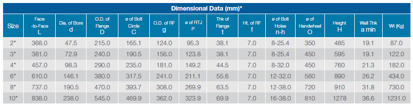 Face to Face dimensions to ANSI B16.10.