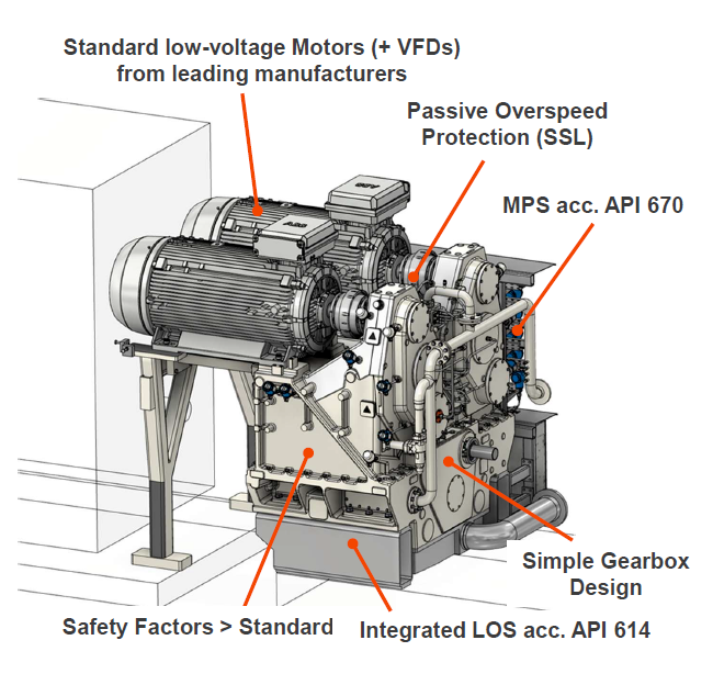 Gearbox design exceeds ISO, API, and AGMA safety standards to ensure long-term reliability and operational security.